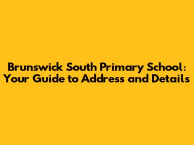 Finding Brunswick South Primary School: Unveiling the Address