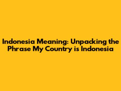 Indonesia Meaning: Unpacking The Phrase 'My Country Is Indonesia'
