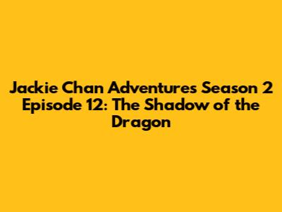 Hey guys! Today, we're diving deep into one of the most thrilling episodes from Jackie Chan Adventures Season 2: Episode 12, aptly titled "The Shadow of the Dragon." If you're a fan of martial arts, ancient magic, and Uncle's hilarious antics, you're in for a treat! This episode really ramps up the stakes, bringing in some seriously cool villains and testing Jackie and Jade to their limits. We'll break down the plot, highlight the awesome action sequences, and explore the implications for the rest of the season. Get ready, because this is one adventure you won't want to miss!