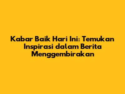 Kabar Baik Hari Ini: Berita Menginspirasi