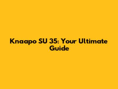 Knaapo SU 35: Your Ultimate Guide