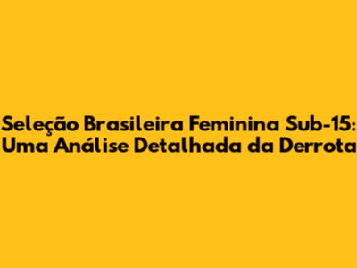 Seleção Brasileira Feminina Sub-15: Análise Da Derrota