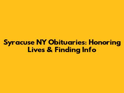 Syracuse NY Obituaries: Honoring Lives & Finding Info